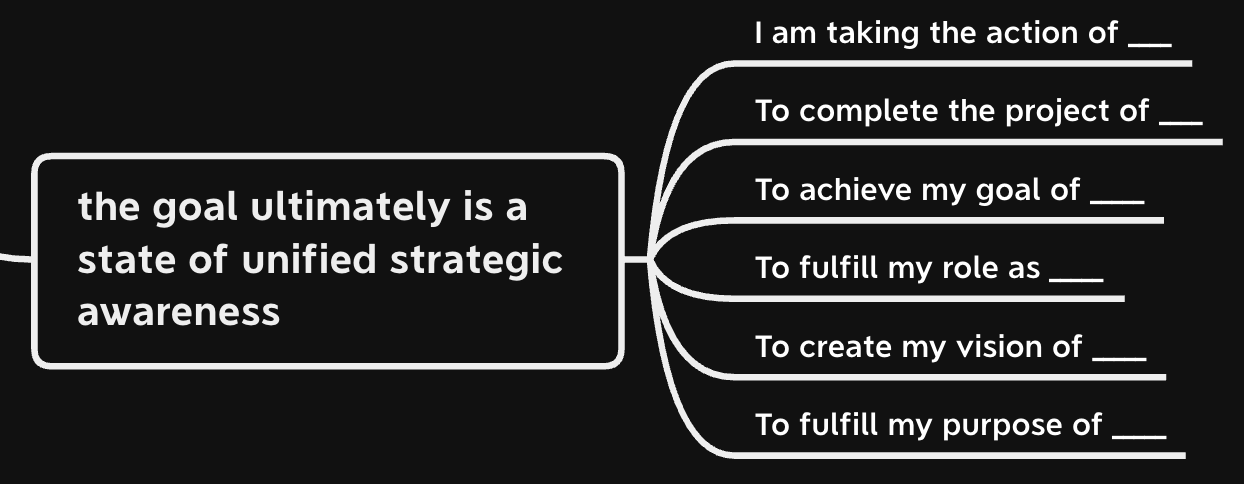 Achieving clarity in your mission involves developing 'strategic awareness' - a unified focus that connects your immediate actions to your ultimate purpose.